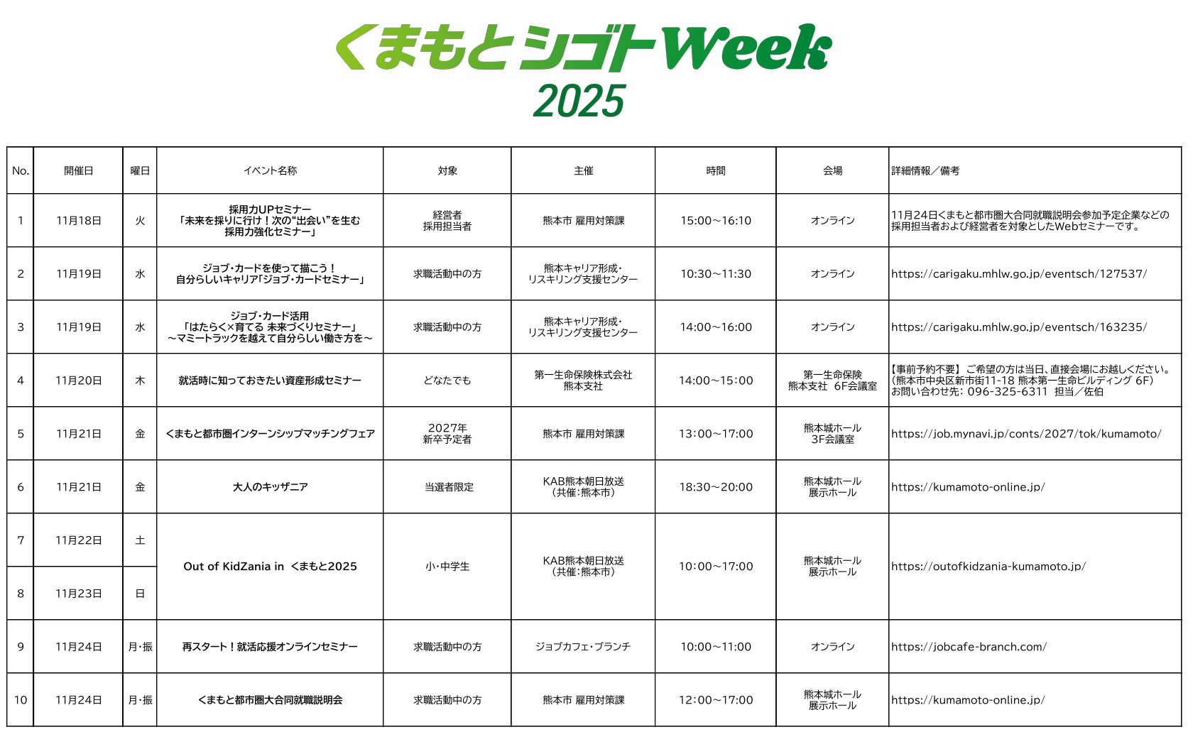 11月18日から24日は「くまもとシゴトWeek」と称し、